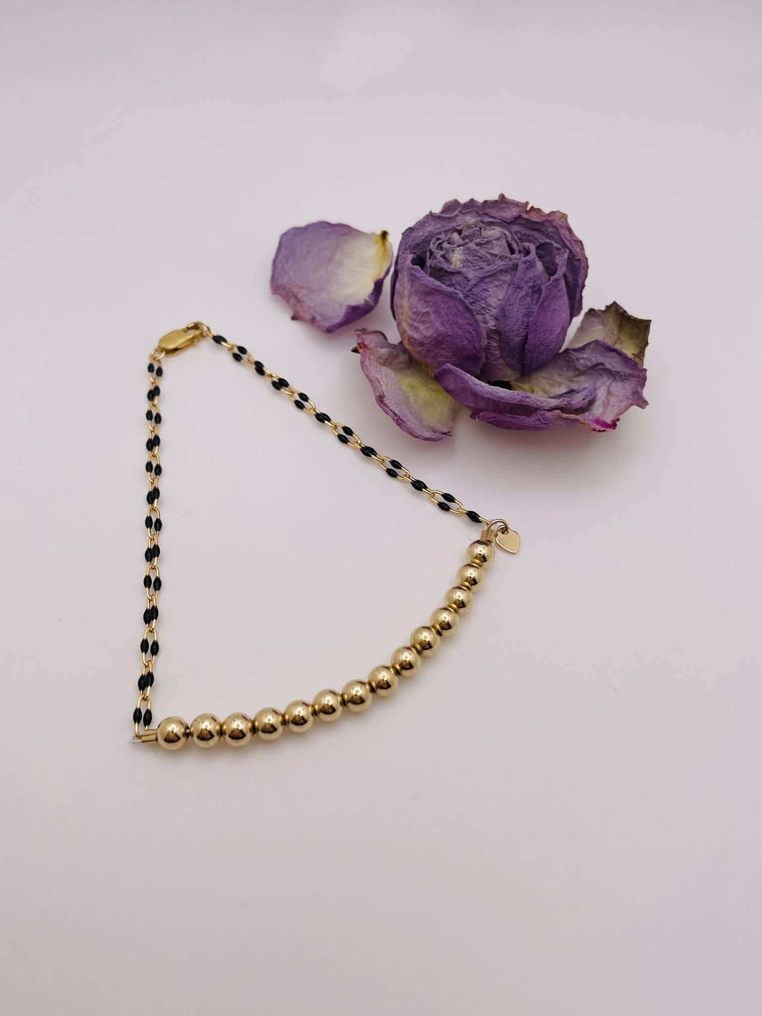 - Tiny gold‑filled heart charm